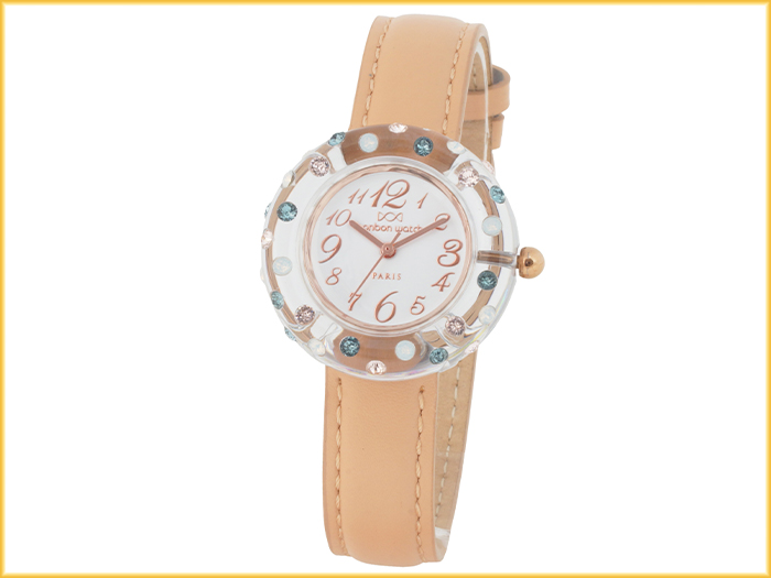 ☆クリスタルのボディに、とても希少なインディアンサファイアに、ゴールデンシャドー(シャンパン)、ホワイトオパールの限定コンビネーション♪手元をエレガントに演出します。文字盤の数字と、竜頭、バックルをすべてピンクゴールドで統一し、見やすさとエレガントさを兼ね備えています。