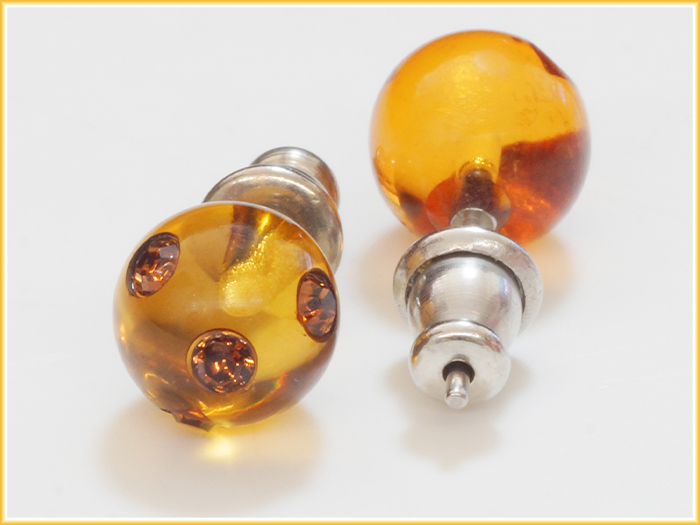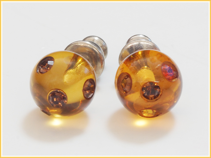 ピアス 丸玉 ブラウン