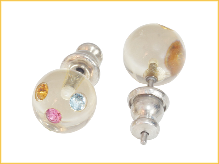 ピアス 丸玉 クリスタル・ホワイト・レインボー