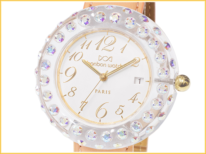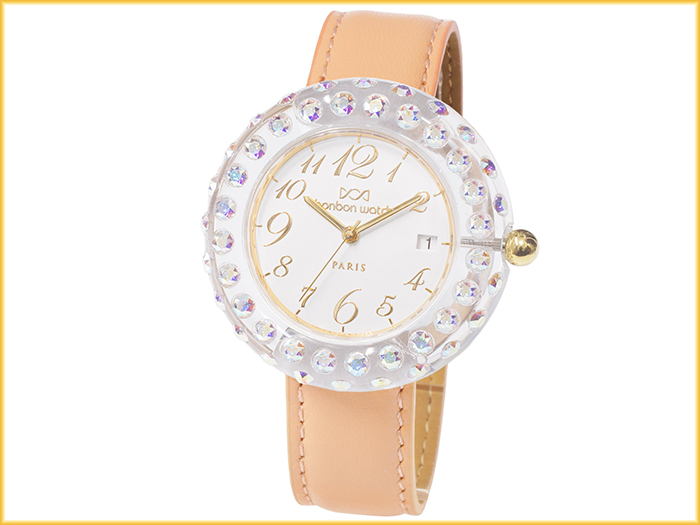 ☆クリアのベゼルに、オーロラカラーのクリスタルガラスがエレガントに手元を演出。ストーンが様々な色を醸し出すため、年間通して合わせやすいのもポイント♪