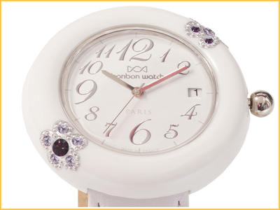 ベゼルの2か所にはマーガレットの花を上品に。2つのストーンの配色が違うのもまたオシャレ♪