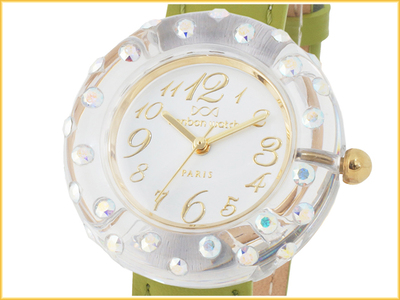 瑞々しい透明なベゼルに、オーロラのストーンをあしらい、美しさを追求するためにこだわり抜いた逸品。同色のストーンで水玉模様に。女性らしさのアクセントに。